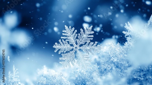 Detailed Snowflake on a Blue and White Background