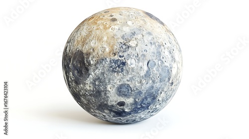Detailed texture planet with craters and varied surface on clean white backdrop