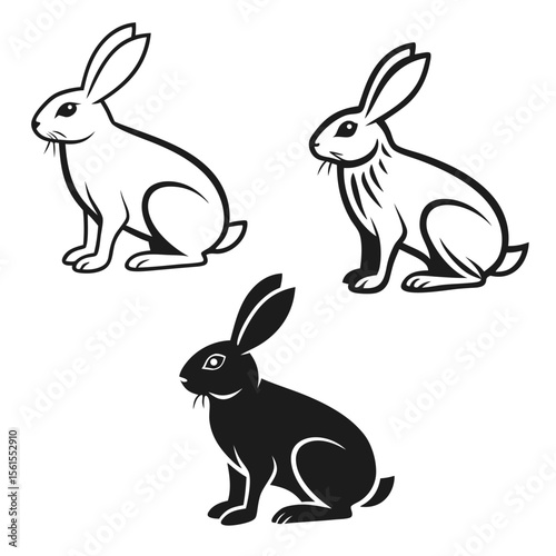 Detailed vector illustrations of rabbits in black and white designs for diverse applications