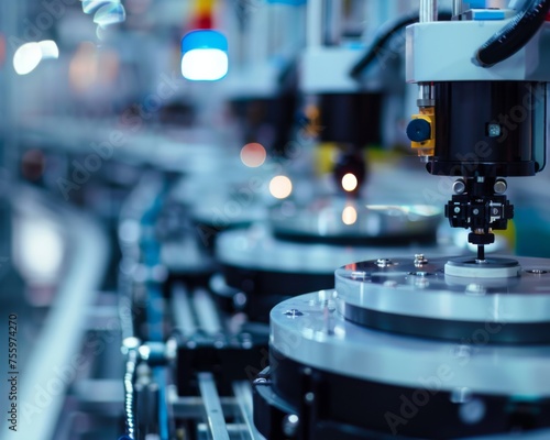 Detailed view of a machine operating in a factory setting, with mechanical parts in motion and industrial surroundings.