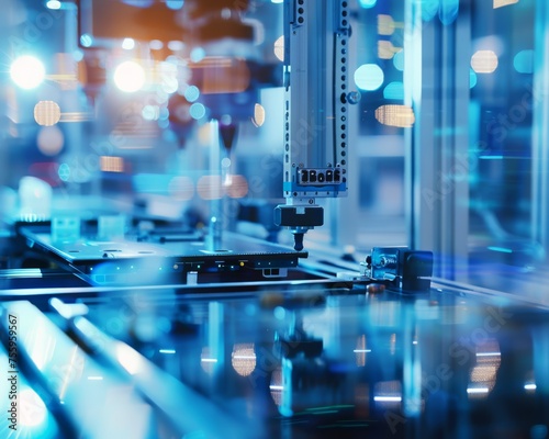 Detailed view of a machine, with bright lights in the background creating a contrast.