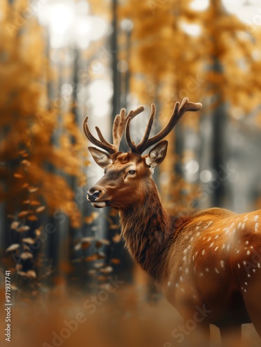 Detailed view of an Elk, Cervus canadensis, in the dense forest