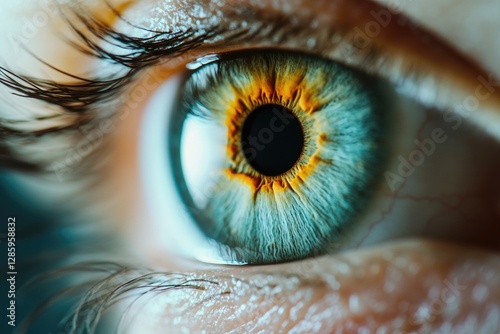 Detailed view of an individual's eye, focusing on the iris and pupil