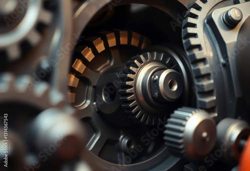 Detailed view of interconnected gears immersed in machine oil during a gearbox repair, highlighting their precision and mechanics.