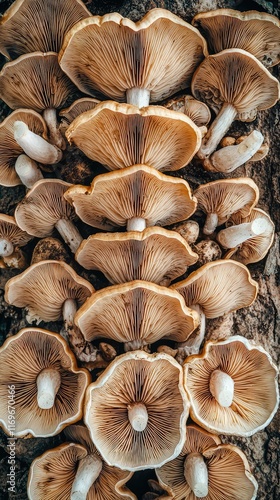 Detailed View of Natural Mushrooms Growing on a Tree Trunk