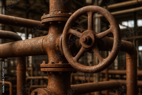 Detailed view of oxidation process on pipeline and hand control in a factory setting