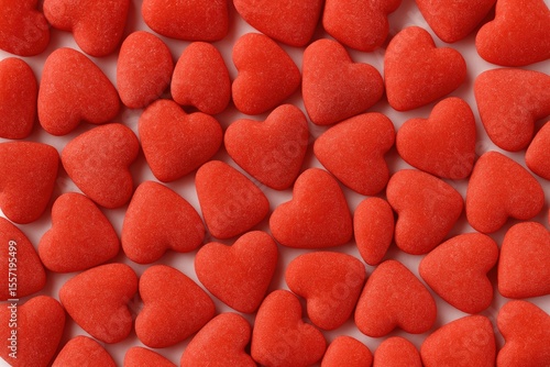 Detailed view of small red heart-shaped sweets