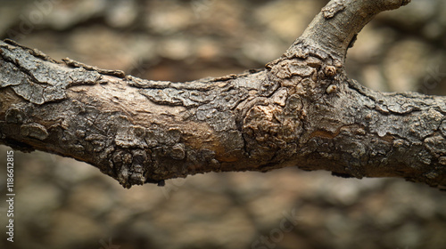 Detailed view of textured tree branch highlighting natural patterns and colors
