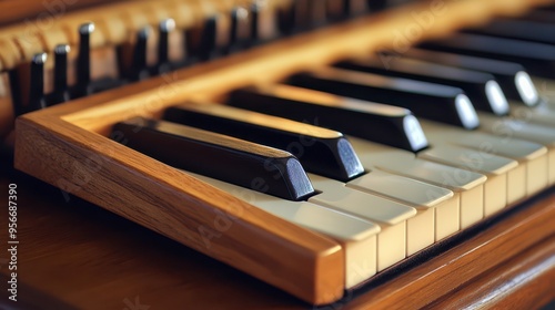 Detailed view of wooden piano keys during a music practice session