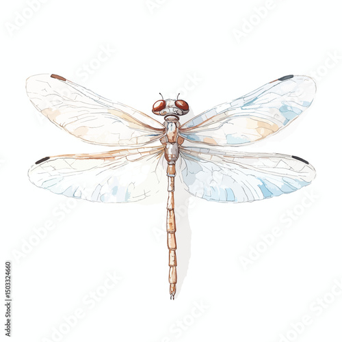 Detailed Watercolor Illustration of a Delicate Dragonfly with Transparent Wings