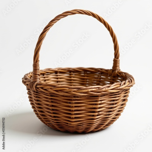 detailed woven basket in a 3d style on a white background, with realistic textures, soft shadows, natural lighting, high resolution