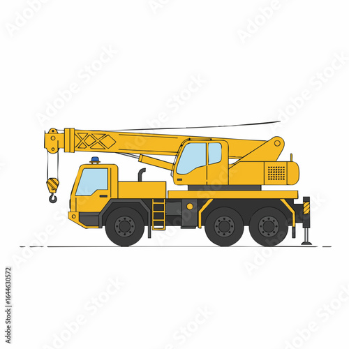 Detailed Yellow Crane Illustration with Extended Boom and Hook.