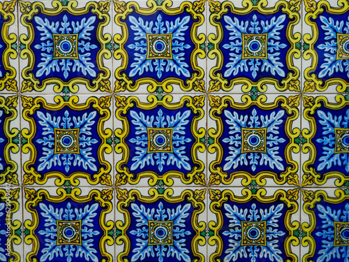 Details of Azulejo (ceramic glazed tiles on facade of houses in Portugal and Spain)