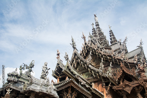 Details of Sanctuary of Truth temple (Prasat Satchatham),handmade reliefs and sculptures, Pattaya, Thailand