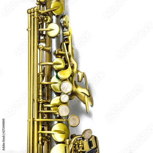 details of saxophone isolated on a white background