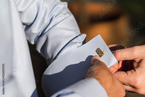 Detalles poniéndose los gemelos un novio el día de su boda