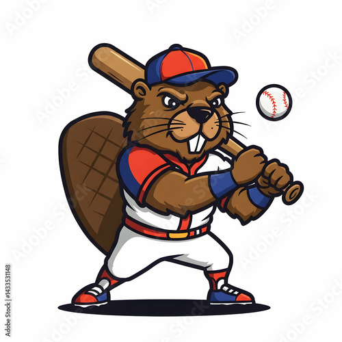 Determined Beaver Baseball Player Ready to Swing for the Fences Cartoon Mascot Logo Design Illustration