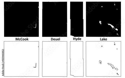 Deuel, McCook, Hyde and Lake County, State of South Dakota (U.S. county, United States of America, USA, U.S., US) map vector illustration, scribble sketch map