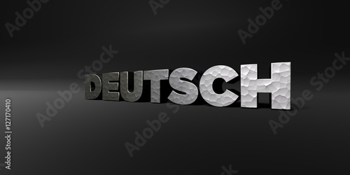 DEUTSCH - hammered metal finish text on black studio - 3D rendered royalty free stock photo. This image can be used for an online website banner ad or a print postcard.
