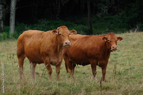 deux vache brune au milieu d'un pré