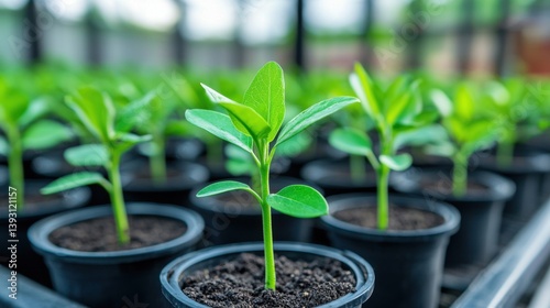 Development Nursery filled with rows of young saplings growing under controlled conditions.