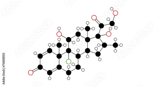 dexamethasone molecule, structural chemical formula, ball-and-stick model, isolated image glucocorticoid medication