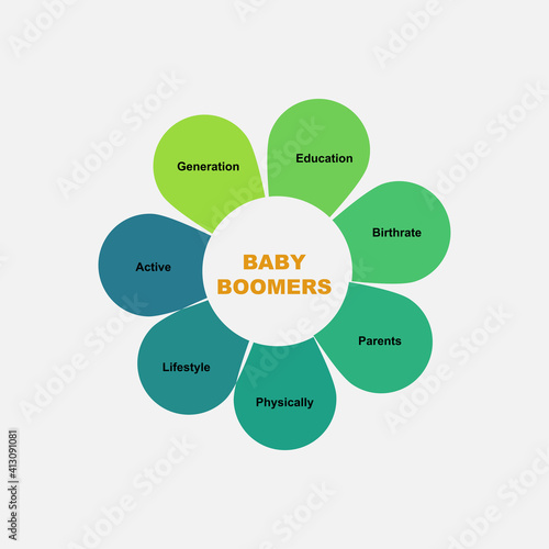 Diagram concept with Baby Boomers text and keywords. EPS 10 isolated on white background