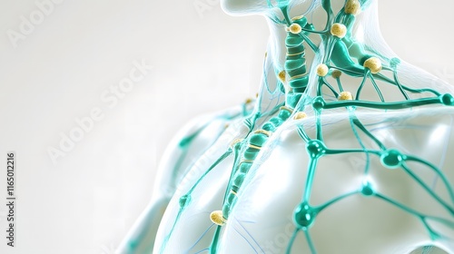 Diagram of the human lymphatic system, showcasing the intricate network of vessels and nodes responsible for immune response and fluid balance in the body. Essential for understanding health and disea