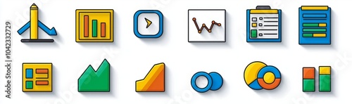 Diagrams, market charts, and financial data graphics for modern illustration. Financial charts, market charts, and business data graphics.