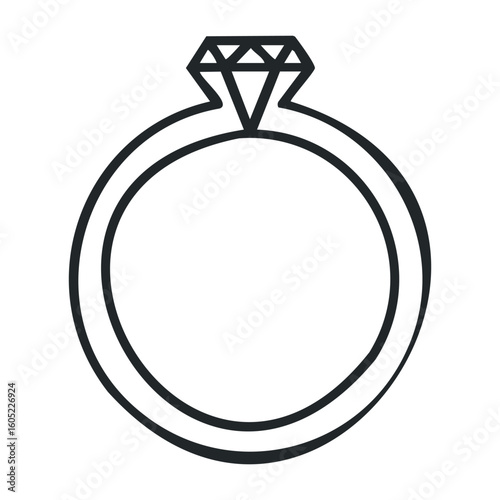 Diamond engagement ring icon with a simple black outline on white background. Vector illustration