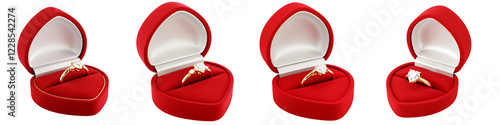 Diamond Engagement Ring in Red Velvet Box – Transparent Background PNG