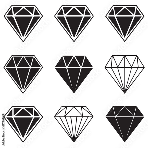 Diamond icon set. Different shapes of diamond cuts. Dimond icon set in flat style. Abstract black diamond collection icons. Gemstone icon set. Diamonds logo
