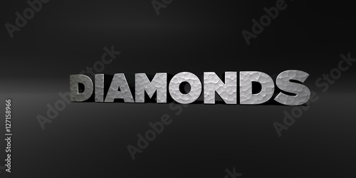 DIAMONDS - hammered metal finish text on black studio - 3D rendered royalty free stock photo. This image can be used for an online website banner ad or a print postcard.