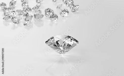 Diamonds group placed on glossy background 3d Rendering Soft Focus