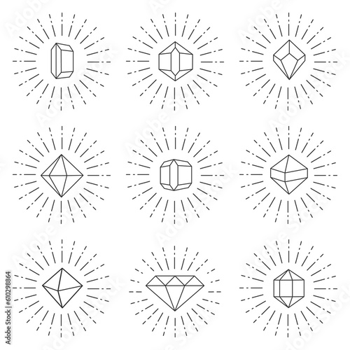 Diamonds icons isolated on white background. Shining gem set. Illustration on transparent background
