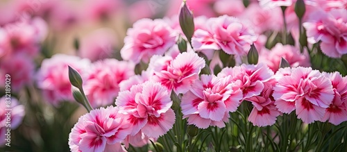 Dianthus Chinensis Flowers in the garden Close up. Creative banner. Copyspace image
