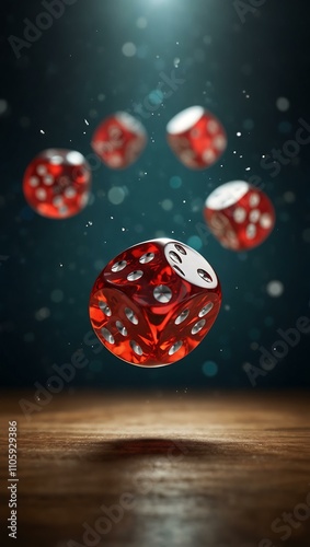 Dice floating in the air, ready for a game.