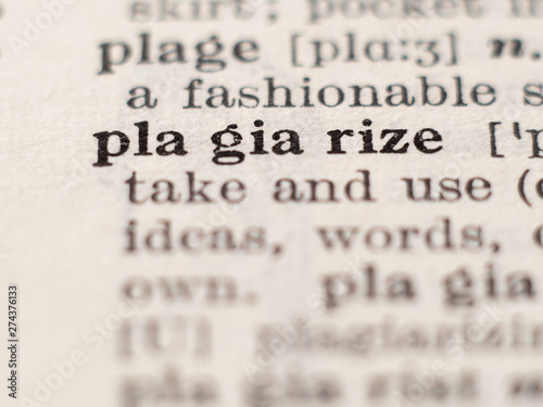 Dictionary definition of word plagiarize, selective focus.