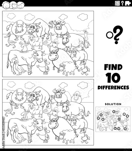 differences activity with cartoon farm animals coloring page