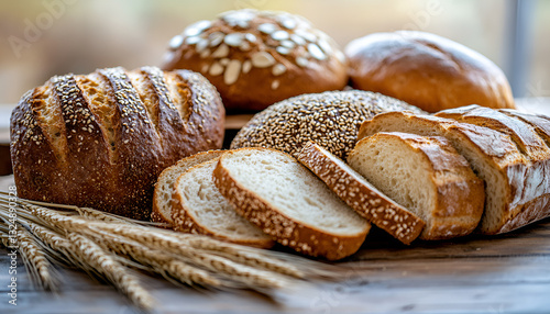 Different bread and bread slices. Food background
