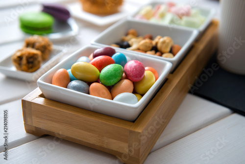 Different color sweets on bowl