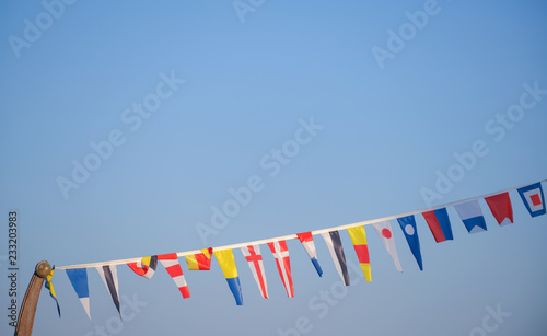 Different countries flags hangs on the ropes