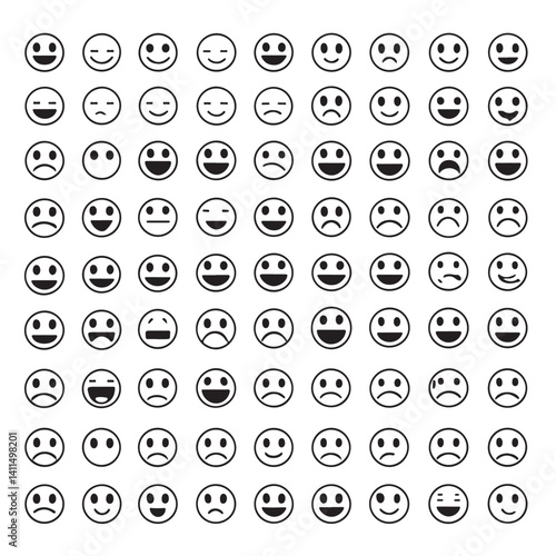 Different moods icon set, with a smile, a serious and a sad face. Vector illustration set.