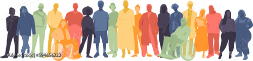 Different people stand side by side together. Pride Month 2023.