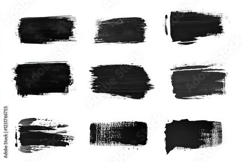 Different styles of black paint strokes on a white background for creative design and art applications