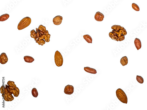 Different types of nuts on a white background.