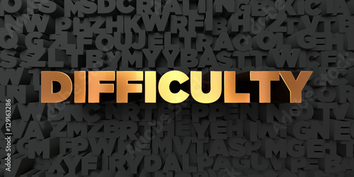 Difficulty - Gold text on black background - 3D rendered royalty free stock picture. This image can be used for an online website banner ad or a print postcard.