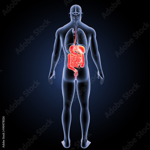 Digestive system with organs posterior view