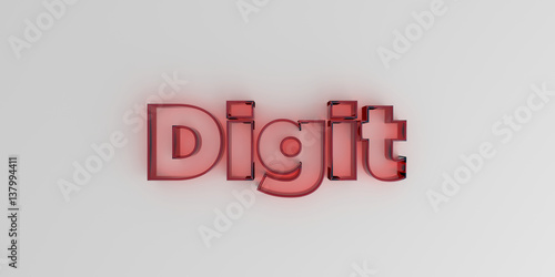 Digit - Red glass text on white background - 3D rendered royalty free stock image.