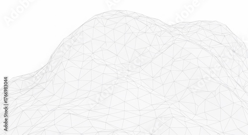 Digital 3D rendering a subtle, light grey polygonal wireframe mesh forming an undulating, abstract surface